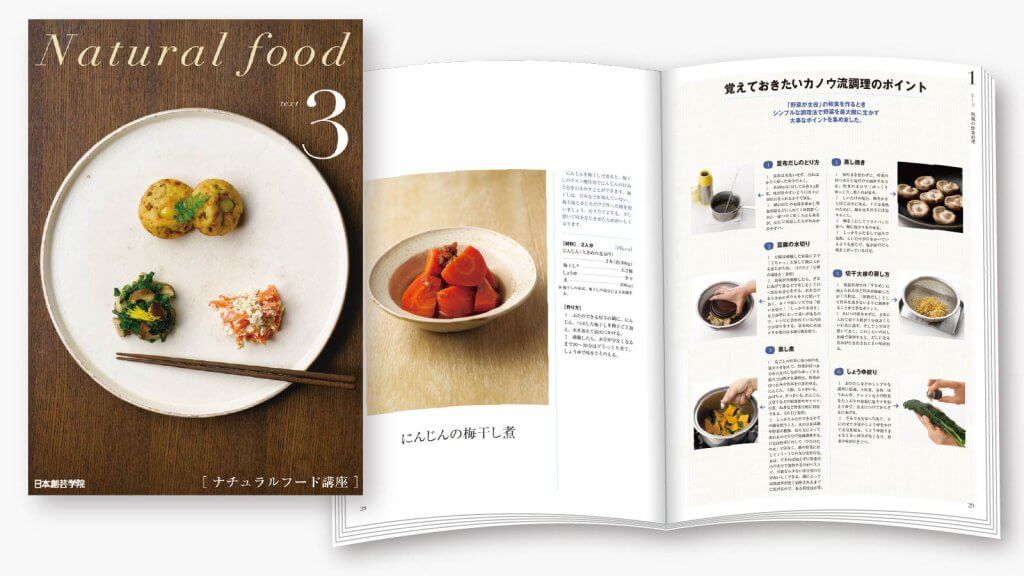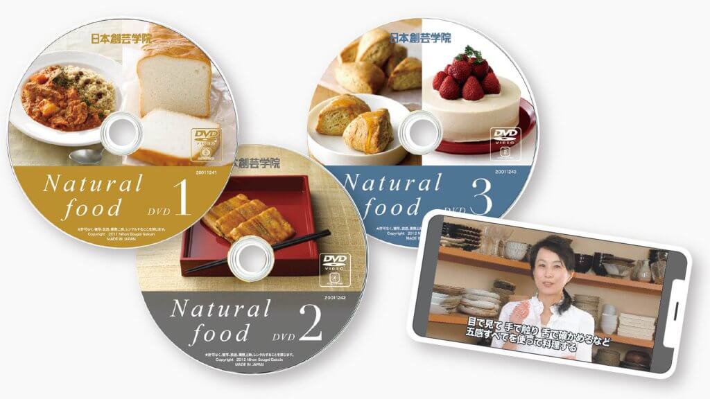 重要なポイントがひと目でわかるテキストと、厨房でしか見られないプロの技を収録した動画に加え、すぐにナチュラルフードがつくれる実習用キットをお届けします。